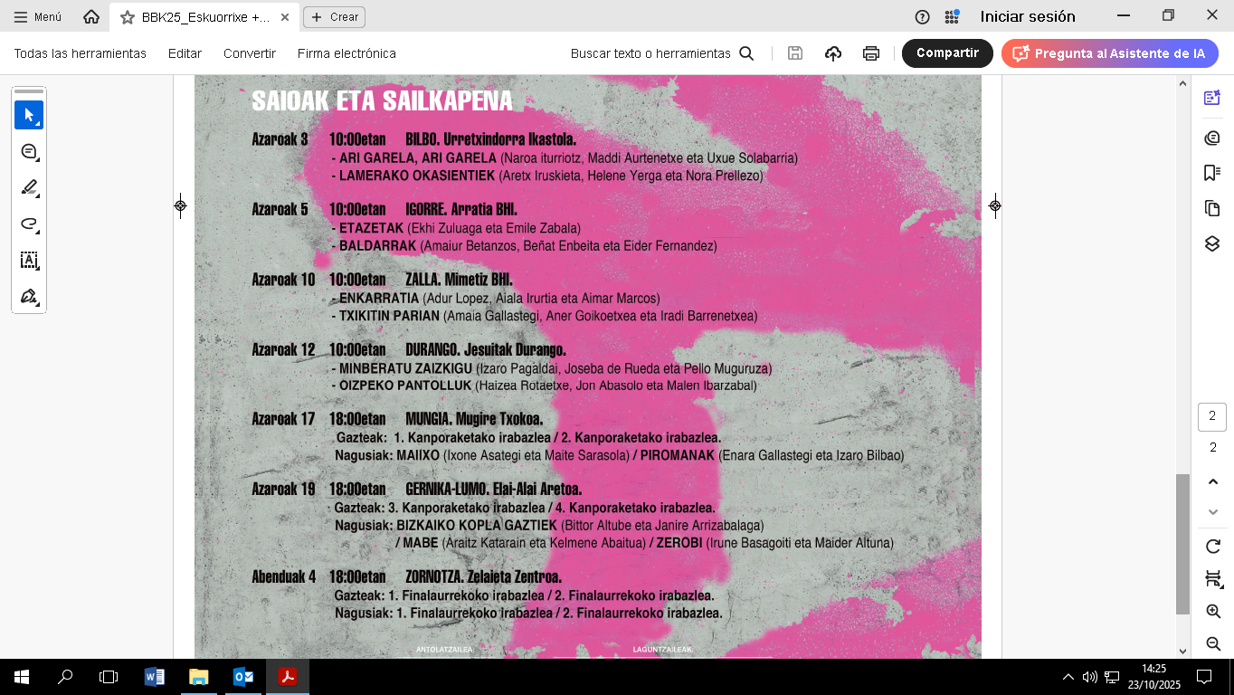 • Bertsolari Gaztee. Saioen taula 2025