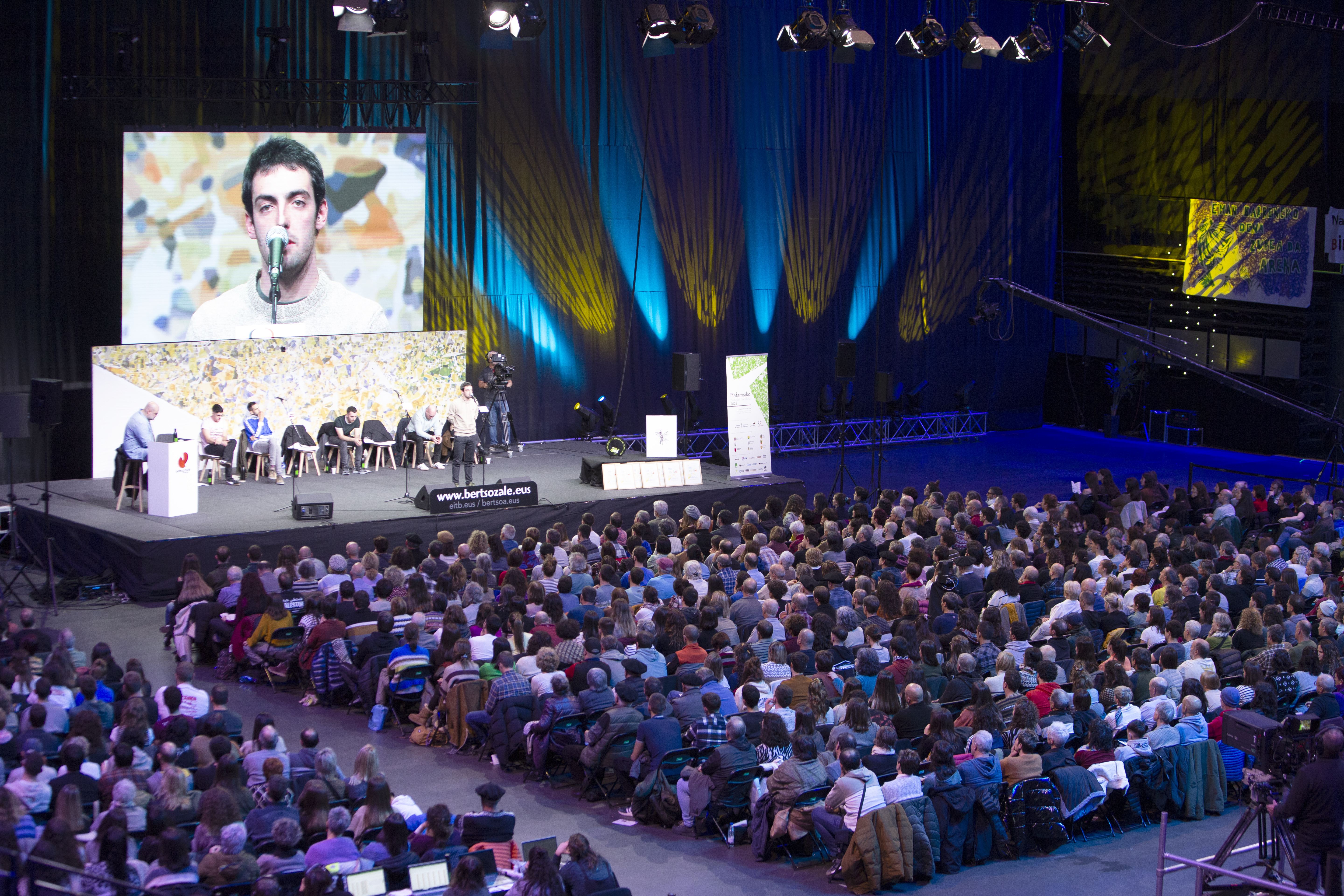 Nafarroa Arena bertsozalez bete da gaur arratsaldean: 2.500 lagun elkartu dira bertan Nafarroako Bertsolari Txapelketaren azken egunaz gozatzeko; Xabat Illarregik jantzi du txapela, Joanes Illarregi anaiarekin buruz-burukoa jokatu ostean.