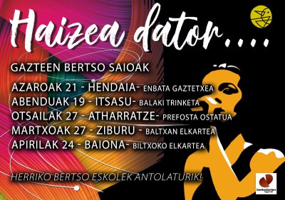 Gai-jartzaileak: Amaia Kastorene Luro; Antolatzaileak: Bertsularien Lagunak